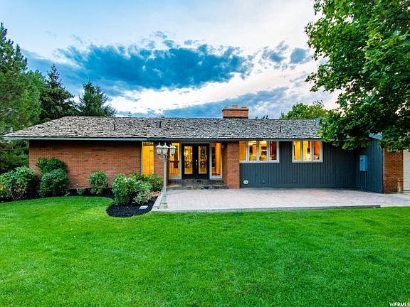 JUST LISTED. FIRST OPEN 9/8 FROM 11-1. Spectacular Setting! Tucked back on a quiet cul-de-sac in North Salt Lake sits this updated Contemporary Rambler. Stamped concrete patio invites you into the beautiful home with a wall of windows, open staircase, fresh paint and new carpet throughout. Open concept floor-plan includes a large kitchen with granite counters, stainless steel appliances and soft close cabinets. Family room with stone wall fireplace, vaulted ceilings and floor to ceiling windows, semi-formal dining room; both of which have access to covered decks with backyard, lake and valley views. Home is perfect for entertaining with fabulous indoor/outdoor living. Elegant and spacious master suite with private balcony, walk-in closet, dual vanity and showerheads, washer/dryer hook-ups. Powder room off the kitchen and access to the attached two-car garage, complete the main floor. Lower level features four bedrooms, two updated bathrooms, arts and crafts room, large laundry room with stainless steel sink, cold storage and second two-car garage and room for RV parking. Natural daylight family room with rock wall gas fireplace, floor to ceiling windows, access to incredible and private .67 acre lot. Spectacular yard features covered patios, vine covered pergola with wood burning stove and built-in seating. Tons of usable grassy areas, several vegetable gardens, multiple fruit trees, gazebo, and surrounded by old growth pines and mature shade trees. Secondary Weber water makes keeping the yard lush and beautiful very inexpensive. This truly is an exceptional property!