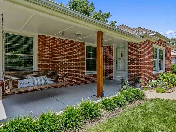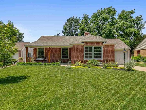 This charming ranch home in east Wichita is the perfect combination of character and updates! With a brand new water heater and a newer HVAC system, your high-cost items have already been taken care of. Pull into the drive and you'll notice the fantastic curb appeal, with well-manicured landscaping and a stunning brick facade. Step up to the covered front porch that has space for a seating area and enter the home to find a large living room with bright picture windows, built-in shelves, and a fireplace that gives you a perfect spot to cozy up with a good book. Notice the gleaming hardwood floors all throughout. The big formal dining room has space to accommodate a large get-together or even an intimate family meal, and you'll love the unique retro light fixture that adds plenty of charm. The updated kitchen has a ton of cabinet space plus new stainless appliances (look at that gas range!) that are all included. A breezy window above the kitchen sink offers pretty views while you're cooking a meal. Two bedrooms and a beautifully updated bathroom with a tiled shower finish this great main floor. Head downstairs and you'll find a family/bonus room with lots of space and a decorative fireplace. There's also a half bathroom, a laundry room with built-in cabinets, and room for storage. Out back, the yard is fully surrounded by a privacy fence. A large patio area offers space for seating and there's a storage shed for your convenience. This home is within walking distance to Lincoln Heights, just two blocks from a Q-Line trolley stop, and close to endless shopping and dining options. Schedule your private showing and see this one today before it's gone!
