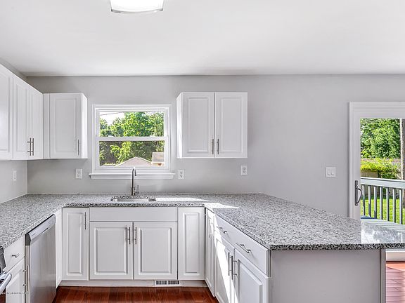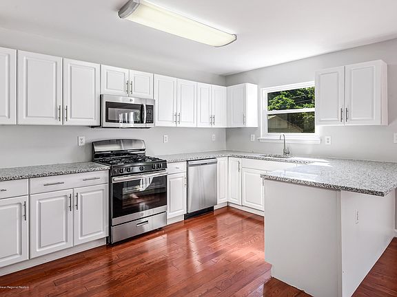 Newly renovated 3 bedroom , one and one half bath home. New floors, new carpeting upstairs, new kitchen with granite countertops, stainless steel appliances and sliding door to deck and bathrooms with beautiful, decorative tile. 1 year Homeowners Warranty Included