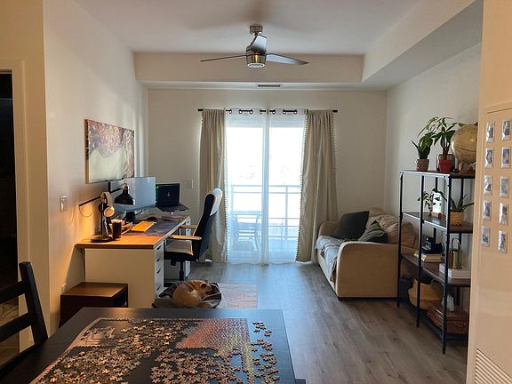 Available April 1st, two-bedroom+den. One tenant occupied previously, modern building and unit will party room, exercise room, patio space. Unit featuring white kitchen cabinets, quartz countertops, subway style tile backsplash, stainless steel appliances, in-suite stacked laundry, walk-in closet, master bedroom with cheater ensuite, balcony and 1 surface parking spot. Unit comes with Rogers 500mbps internet included and gas heating included in the price. Conveniently located close to Conestoga mall, restaurants, grocery, shopping, RIM campus and the highway. Owner pays for gas heating, tenant responsible for water and hydro