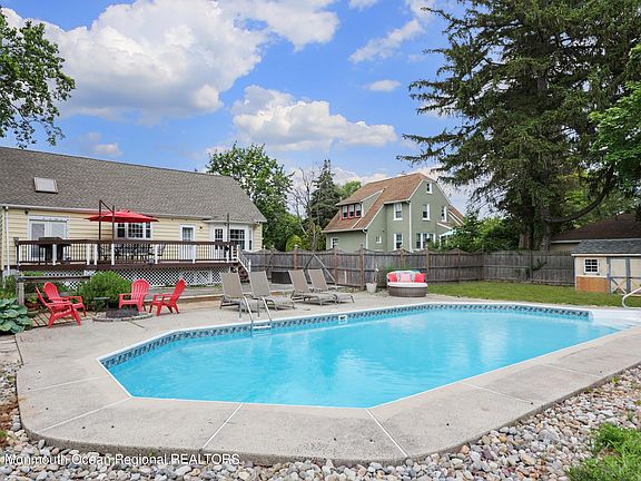 OAK HILL CHARMER! There is nothing more quintessentially americana than a Cape Cod Revival with its timeless clean-lined silhouette and effortlessly appealing style. This layout provides an easy flow from the living area, beautifully updated kitchen, dining room, first floor bedroom, full bath and office. Master bedroom with ensuite bath and 3rd bedroom complete the second level. Whether sipping your morning coffee or unwinding at the end of the day, the back deck and pool area provide the perfect retreat. Additional highlights include full basement, 2 large connecting driveways and a sprawling backyard with a new fence being installed! Benefit from excellent schools and close proximity to parks, downtown Red Bank, beaches and easy access to GSP, train, bus and ferry commuting options. Home has been well cared for with a new kitchen renovation including new kitchen appliances, new air conditioning installed 1 year ago and water heater replaced 1.5 years ago. Call today!