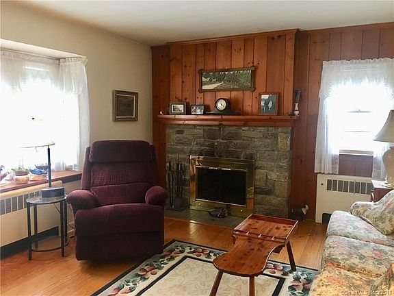 **ONE LEVEL RANCH LIVING ON PRIVATE WOODED LOT** This cozy home sits on 2 private acres of land set back from the road. Tranquility and nature surround. Beautiful original hardwood floors can be found in the living room, two bedrooms and hallway. A Dutch wood front door makes for a welcoming entrance along with a coat closet at the foyer. A stunning wood burning stone fireplace in the living room along with a box window to enjoy the sunlight and views. The eat in kitchen has solid wood cabinets, plenty of counter space and a box window to look out as you enjoy your morning coffee. Off the kitchen is a large three season enclosed porch, perfect for relaxing and entertaining. The master bedroom is spacious and features 3 separate closets. The second bedroom has a built in book case. Full dry basement which adds great storage and includes the speed clean washer and dryer. Outside features level areas perfect for outdoor fun, a cement/slate patio, garden area and three storage sheds. An over-sized 2 car garage and a large paved driveway which also allows access to the rear yard provides an abundance of off street parking. Brand new septic system for a 3 bedroom house to be installed at Sellers expense prior to closing.
