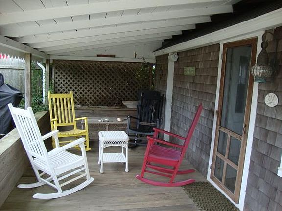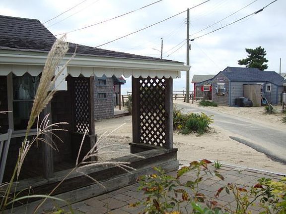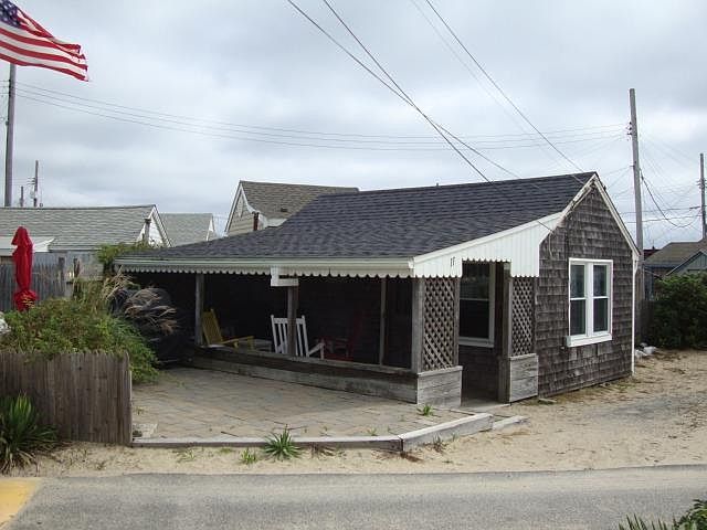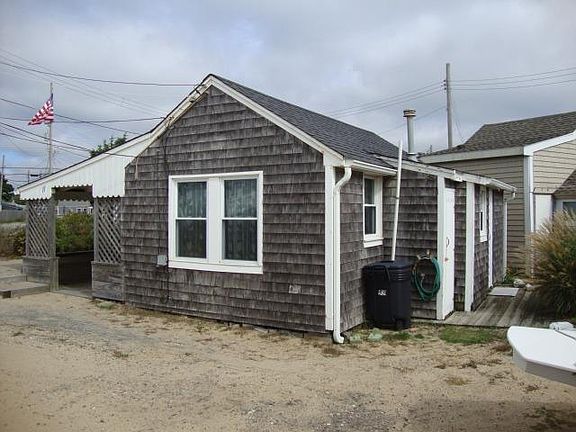 See yourself, family, friends enjoying the patio with a view of Nantucket Sound. Walk to the private 1000 foot beach. Enjoy the water. The covered porch adds to the outdoor summer living at this cottage. The cottage has been recently renovated. It comes furnished with a sound system. There are interior accents of art glass, wainscoting, and cathedral ceiling. There is a kitchen and dining area. Wood floors and summer decor add to the ambience. The bathroom has a shower, sink, and toilet. There are wall and floor tiles in the bathroom. The cottage can be rented for income. The cottage is on leased land and the HOA fee includes land lease, electricity, water, cable television/Wifi, police patrol, taxes, and water treatment facility preliminary estimate requirement. The lease is through 2033. Road frontage and lot depth and width are approximate. The foundation is of concrete/cinder blocks.