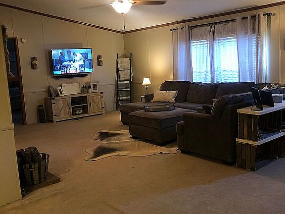 Spacious 4 bedroom 2 bath home with a bonus office room or study. The kitchen offers plenty of cabinet space with a separate dining area. There is a large living room with wood burning fireplace. The master suite offers a walk in closet and new flooring in the master bathroom/laundry room combo. This home sits on 6 acres at the end of Paige Lane. Refrigerator, washer/dryer negotiable. Call a local REALTOR today to schedule a showing.