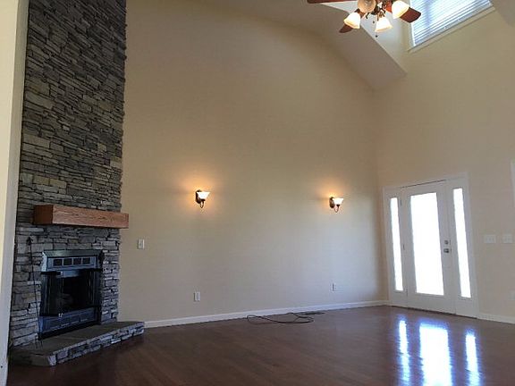 Prosperity Pointe great curb appeal one level home. Spacious 3 bedroom 2 bath split floor plan with vaulted ceiling and sky lights in living room. Magnificent floor to ceiling stacked stone fireplace. Master bathroom features jet tub, large walk in closet. Master bedroom offers french doors leading to back deck. Full fenced in back yard with one of two gates large enough to drive into the back yard. New paint. Refrigerator, dishwasher, stove/oven and microwave included.