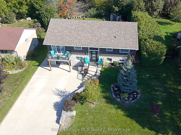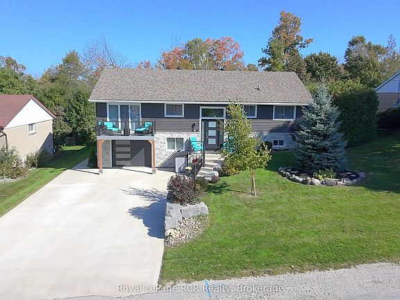 Welcome home to your remarkable renovated home with added value beyond what your eyes can see! Curb appeal on the outside and even more to enjoy on the inside. UPGRADES galore starting in 2019 extending into 2025 - too many to note here. Come see for yourself! Roll into your double-wide cement driveway lined with armour stone to welcome you into your new home sweet home. The entire exterior facade was removed and replaced with IKO EnerFoil insulating foam board, Be-On Stone board and Gentec vinyl siding. The inside of this home features granite and quartz countertops throughout (kitchen, baths, and bar), a three-pane sliding door that walks out onto a composite deck/balcony out front with glass railings from the kitchen/dining room. From the living room, sliding doors lead to a aluminum decked creating a dry patio below fit with pot lights. Durable high-grade vinyl flooring throughout with cozy carpets in the bedrooms. The home was previously heated by baseboard heaters and 2 natural gas fireplaces, now the house is outfitted with a forced-air natural gas furnace and central air serving as the main source of heating and cooling. All of the original attic insulation was removed and replaced with a spray-foam base and a top-layer of loose blown-in insulation. The associated upgraded attic venting helps regulate air flow and maintain temperature. If you prefer the outdoors, walkout onto your rear cement patio from your lower level sliding doors into your fully-fenced yard to keep either your kiddo(s) or animal(s) safe. A pool-grade chain link border fence was recently installed. The white cedar side fences and private yard creates your own urban oasis. This property is in a sought after area close to the golf course and hospital. Enjoy seasonal views of Georgian Bay, home efficiency, privacy, and the move-in ready state of this beautiful home. You don't want to miss out on this one!
