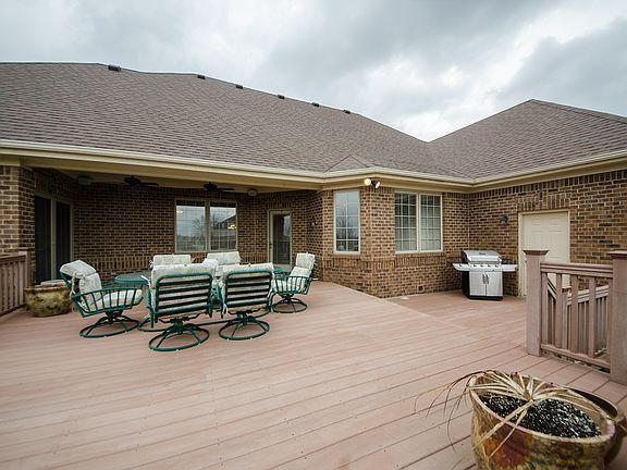 Custom built Associate split bedroom all brick/stone ranch offering 4185 finished sq ft. This home offers Pella windows, stained woodwork, whole house audio, and many upgrades. Partially covered deck, with 2 tiered uncovered composite deck walking down to a firepit and water feature. Grandma's Gardens Landscaping with fenced yard. Master suite has an exit onto the covered deck, & beautiful master bath w/ Jacuzzi tub and walk in tile shower. the other 2 bedrooms on the first floor share a jack n jill bath. A laundry room you will never want to leave! When you walk in from the huge 3 car garage you can throw your coat and shoes in bench seat. Huge kitchen with island gas cooktop with pop-up vented hood, built in oven/micro and fridge all stay. Breakfast nook very large for a huge table. Study and Dining right off the foyer. Finished lower level offers a Media room, rec room, craft room, bedroom, exercise room and TV room. TONS of storage and updates! 1100 sq ft unfinished! New roof 9/20