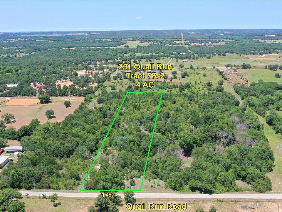 Experience Texas countryside beauty with this 4-acre parcel located 16 miles north of Weatherford and Mineral Wells and an hour west of Ft. Worth. This tract includes a water well drilled in 2022. With no restrictions, HOA, build requirements, city taxes or flood zone – freedom is yours to create a dream home in your style. Welcome your animals and enjoy the tranquility of country living with city comforts within reach. Septic required with overhead electric available from Tri-County Co-op. Includes flexibility to subdivide to minimum 2-acres. Tract 7R-2 is one of four tracts on offer and is at 251 Quail Run Rd (32.9364, -97.9922)