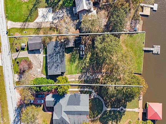 Deeded waterfront property on the beautiful Alcovy River area of Jackson Lake. Circular front driveway and large concrete parking pad with a detached carport provides plenty of parking as well as a covered place to store boats and other vehicles. The concrete boat ramp extends all the way to the front drive, making it easy to launch your boats. Out back, there is a covered picnic area that's perfect for grilling out and entertaining, as well as 2 outbuildings for storage. Inside, the home has 3 bedrooms, 2 bathrooms, and a large screened in porch overlooking the lake. Large country kitchen with pantry, separate dining area, and huge laundry room. This lot is what everybody is looking for. Gentle slope almost flat to the water in area of nice homes. House has good "bones" construction is solid however it does need renovation. This is a great lake house/lot.