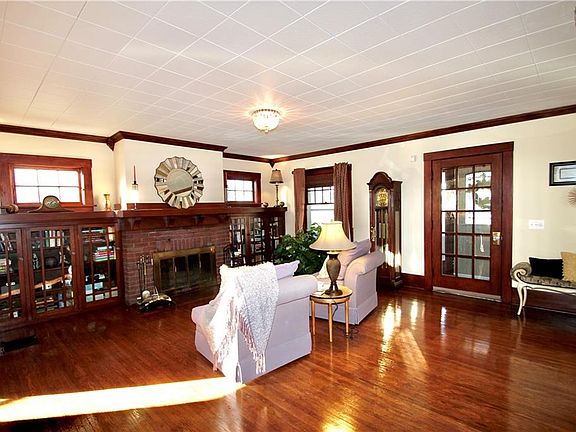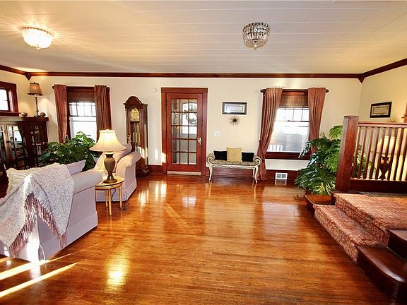 WELCOME HOME! That is exactly how you will feel the moment you walk onto the large front porch of this Craftman style two-story bungalow. Be greeted inside by newly refinished hardwood floors throughout, original woodwork and crown molding. Spend evenings in front of the wood burning brick fireplace, flanked by built-in glass enclosed bookcases. The fireplace was rebuilt in 2009 and has been enjoyed often. Entertain your family and friends in the large dining room featuring a huge bay window with built in seating and storage. Two French doors lead you to the enclosed three season porch. Kitchen was refinished in 2016 with all new fixtures & appliances leaving the original Butler's cabinetry with glass doors. The impressive stairway leads you upstairs to three large bedrooms with ample closet space with another large storage closet in the upstairs landing. The full bath was completely gutted & redone in 2016. Laundry & another full bath can be found in the partially finished lower level, awaiting your personal touch. Outside, you will find an unattached one car garage in a partially fenced back yard. Showings ONLY between the hours 10am-4pm 12/11-12/13. Offers due by 9pm on 12/13.