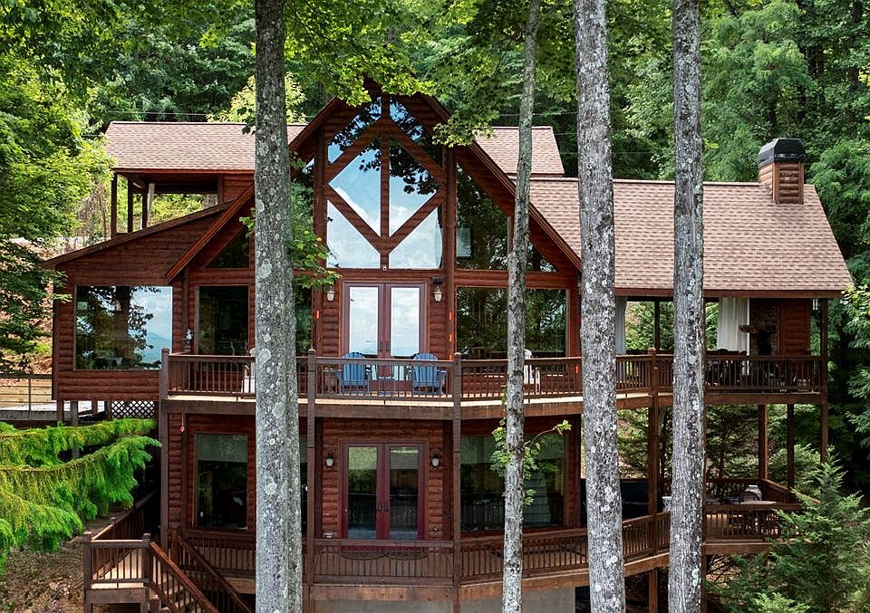Welcome to 251 Ridge Road, your rustic retreat in the heart of Blue Ridge! This stunning three-level home offers massive, sweeping views of the mountains and the lake, creating an unparalleled backdrop of natural beauty. Located in a private, gated community, you're just minutes from the Aska Adventure Area, hiking trails, and everything downtown Blue Ridge has to offer. Step inside to an open concept living space, where a grand wall of windows floods the room with light and showcases the incredible views. Cozy up by the fireplace in the living room for those cool mountain nights, or head out to the expansive porches, where a second fireplace awaits—perfect for outdoor evenings by the fire. Multiple seating areas invite you to relax and take in the sights and sounds of nature. Downstairs, a spacious recreation room is ready for movie nights, games, or just unwinding after a day of adventure. The master suite upstairs is a true sanctuary, complete with cathedral ceilings, a private balcony, and a luxurious en suite bathroom that makes you feel like royalty. Whether you're seeking outdoor adventure or quiet, cozy nights by the fire, 251 Ridge Road offers the best of both worlds in the beautiful Blue Ridge mountains. This is mountain living at its finest! Furnishings included with a strong offer.