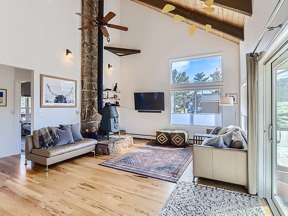 Beautiful completely remodeled home in serene open mountain landscape with million-dollar views of Boulder and the front range with all the amenities you could ask for. Enjoy the secluded area of mountain living while only 15 minutes from the city of Boulder. This 1.67-acre mountain retreat is in the beautiful Boulder Heights neighborhood. Enjoy the serenity, the nature, and views, all while close to North Boulder amenities. This 3 bedroom, 3 bath home has been completely updated and includes hardwood floors, vaulted ceilings, open floor plan and a wrap-around deck. The wood burning stove in the living room will keep you cozy all winter. Beautiful new kitchen offers new shaker cabinets w/ quartz countertops, SS appliances, custom tile backsplash, & breakfast bar. The primary bed&bath suite is on the top floor with oversized sliding glass door to a private balcony for morning coffee or evening sunsets. The renovated walk-out basement includes a full bath and kitchenette with concrete countertops. The two-car garage has plenty of space for your outdoor gear. Washer/dryer included.