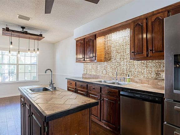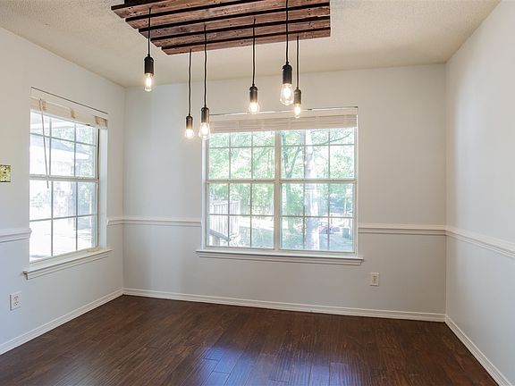 All brick 3 bedroom 2 bath house on a great lot. House has recently been painted and updated. This home has upgrades that include tile floors in the kitchen and baths and engineered hardwood floors everywhere else. No carpet anywhere in the home! The house has a nice living room with a fireplace that flows into a breakfast room and kitchen combo. The kitchen has a neat backsplash, a kitchen island that has a prep sink built into it and a custom light fixture in the morning room. The appliances are stainless and EVEN THE oversized REFRIGERATOR STAYS, with the house. The utility room is located just off the kitchen and leads into the enclosed garage. The bedrooms are located on the other side of the home as well as the additional 2nd bathroom. The master bedroom has double doors leading into the master bath which comes with two walk in closets. Outside is a big yard that is fenced for your pets and a large wooden deck built off of the master bedroom and living room. This house is neat, clean and flows very well and it's hard to beat the price. It's VACANT AND EASY TO TOUR. Scroll down listing for a virtual tour!