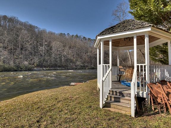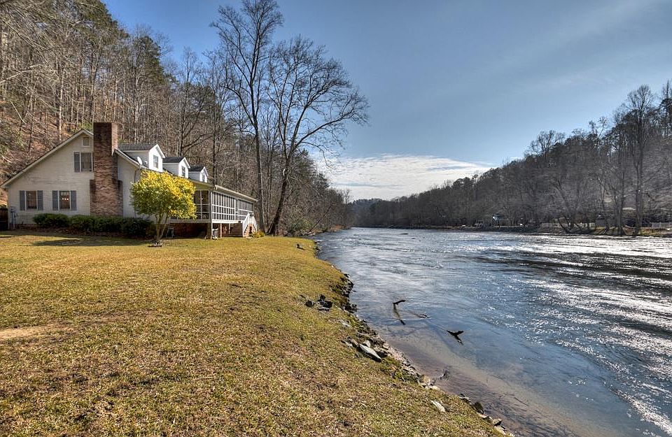 Live the farmhouse dream at this river frontage home. Enjoy the screened porch area and listen to the roaring river. Unique 270' river frontage. Imagine fishing, kayaking and tubing from your own property. Spacious level laying lot with Gazebo and plenty of room for family & friends. 5 bedrooms and 2.5 bathrooms. Cute as a button kitchen. Gorgeous stone wood-burning fireplace. Tons of room for all of your needs. 3 bedrooms and 1.5 bathrooms on the main floor and 2 bedrooms and 1 bathroom on upper floor. Located in the beautiful Coosawattee River Resort with amenities such as river access, gated entrance, 3 pools (one indoor), tennis/basketball courts, mini golf, parks, pavilions, and walking trails. In the heart of wineries, eateries, antique stores, hiking/biking.