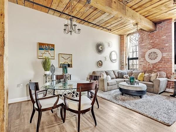 Rocketts Landing is perfect for those seeking an everything at your fingertips kind of lifestyle without the commotion of city living. And this unique 1 bedroom/1bath walk-in condo in the charming Cedar Works building offers the amenities you desire right outside your door. But before we head outside, there are features worth noting that make this condo unique on the inside. The 20 ft ceilings and open concept living area make this unit feel spacious and welcoming while the exposed brick walls, wooden rafters and hardwood floors give it a cozy charm and modern feel. Washer and dryer are available not only in the apartment but heavy duty laundry appliances available as well to all Cedar Works residents in the basement. Additionally, Cedar Works residents have access to a neighborhood gym, 2 swimming pools and a breezeway accessible parking garage. For those who prefer public transportation to get around, Rocketts Landing is conveniently situated along the GRTC Pulse bus route just minutes from downtown. And for bikers the Capital Trail will not only take you downtown but all the way to Williamsburg. And finally - food - there are three restaurants to choose from within Rocketts Landing and two breweries that are within biking distance. Rocketts Market Place is steps away from you on Main Street and offers grocery essentials, prepared items and an extensive beer and wine selection. The perfect stop for a morning coffee before catching the bus. Owner pays water Renter pays electric No smoking Fully Furnished