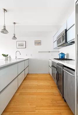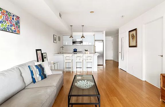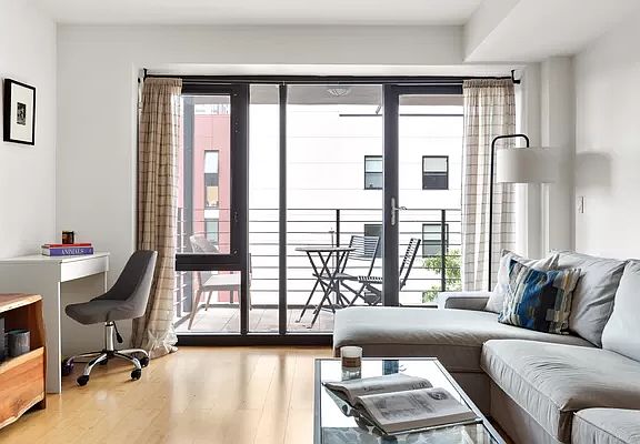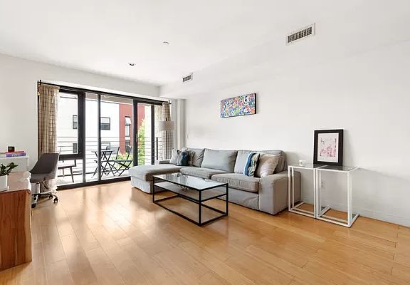 251 South 3rd Street offers a well-designed 2BR apartment in the eclectic and thriving neighborhood of Williamsburg. Its eco-friendly bamboo floors and entranceway will whisk you away into a cozy and inviting living space. After passing through the hallway, the kitchen can be found on the right, complete with bright marble countertops, stainless steel appliances and elegant cabinetry that spans the whole kitchen. The spacious peninsula, illuminated by whimsical drop-down lighting, functions both as a countertop for preparing meals and a bar/seating area for guests and residents alike. While many New York homes have isolated kitchens, this one opens up into the spacious living room, encouraging free-flowing conversation. The large living room's bright walls allow light to bounce all throughout the home. One will also notice the unit's air ducts run throughout the space, bringing modern central air to a city that doesn't always boast it. The open room gives limitless possibilities with furniture, and leads to the crown jewel of the unit: large windows opening up to a stunning balcony. This patio, not as easy to come by in a city full of fire escapes, is enticing in itself and looks over a buzzing 3rd street. It features wrap-around horizontal railings, giving a sleek edge to the charming brick-and-mortar neighborhood. The large glass panes, framed by bold black metal, is a theme that carries through the outside of the building, and can also be found in the master bedroom. The master bedroom is bright and spacious. It features a wall-to-wall set of windows, including a large one that hinges wide open, allowing airflow on Brooklyn's breezy days. The second bedroom has a perfectly balanced amount of overhead and natural lighting, as well as a closet. Equally as bright, if not even more so, is the highly modern bathroom fully equipped with a washer/dryer, with a spacious glass-walled standing shower surrounded by a room of elegant slate. Built in 2008, the 10-unit building was designed with the surrounding neighborhood in mind, blending perfectly into Brooklyn's red bricked charm while offering sharp but subtle modern décor on its façade. Amenities include a video intercom, elevators, a garden, a roof deck and is pet-friendly. The unit has its own storage unit, included in the sale. 251 South 3rd has extremely low monthly's and enjoys a tax abatement . Located within walking distance of the J/M/Z/G/L lines, it offers quick and easy access to all of the surrounding boroughs, while also offering a neighborhood feel in comparison to lower Manhattan across the water. With access to parks, bars, restaurants, cafes, and of course the East River, the building is sure to make any resident feel right at home in a vibrant community.