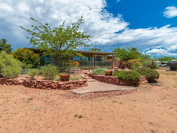 This is a beautiful home located in the heart of the Verde Valley. The large windows and sliding glass doors make this home bright with natural light and open space. Sitting on a .83 acre lot gives endless opportunity for gardening and farm animals. A must see for anyone seeking an affordable, peaceful, quiet and private setting close to Sedona and Cottonwood. Enjoy the great hiking trails, Oak Creek and the wineries of Cornville. This home offers you harmony and serenity with the convenience of town just a few minutes away. Beautiful views of Mingus Mountain and a front and back porch to enjoy peaceful evenings.