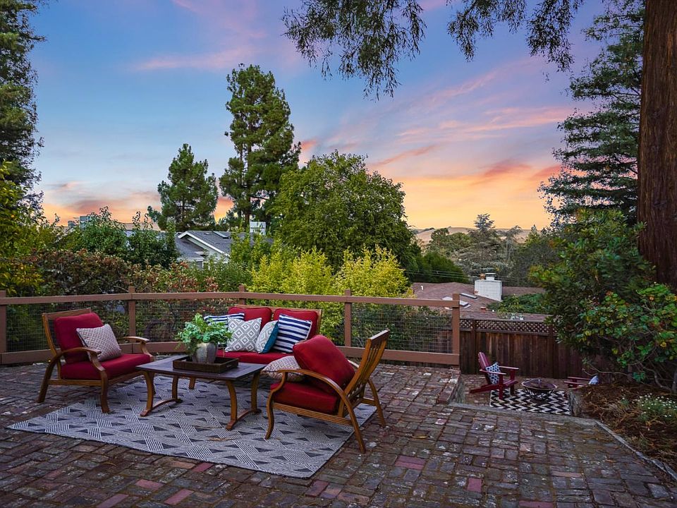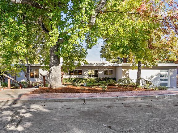 Tucked away on a quiet Ladera cul-de-sac, this mid century home offers quintessential California living on a +/-9600 SF lot with level areas, views, and mature fruit trees. The living room, with a vaulted wood ceiling, hardwood floors and corner fireplace, boasts stunning views of golden hills through a wall of windows. The upgraded kitchen has stainless steel appliances and direct access to the pristine large garage. A primary suite opens up to the outdoor brick patio. Two large bedrooms, an office area off the living room and cozy bonus area downstairs complete the home. Relax in the spacious backyard with several level areas, a beautiful lawn, majestic redwood trees, and views of the Stanford dish and hills. Savor apples, pomegranates, peaches, and Fuyu persimmons from the yard's small orchard. Other upgrades include Google Nest doorbell/fire detectors, new front door, new garage door, new paint inside & out, new closet doors, & new driveway. Welcome Home.