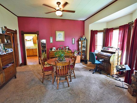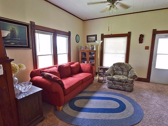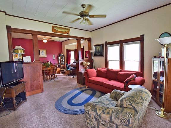 3-4 bedroom, 2 bath family home with Victorian features. On the main floor you will find great charm in the colonnades that divide the living room and dining room. Kitchen has oak cabinets and includes stove, refrigerator and dishwasher. Upstairs has 3 bedrooms and bath with laundry. Shady, level corner lot. Vinyl siding. Additional lot to south of property available.