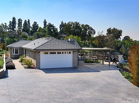 This is the home that you have been waiting for! Absolutely amazing SINGLE LEVEL home with 180 degree views! EVERYTHING has been redone & improved with superior quality for easy low maintenance living. This is an entertainers dream outside & inside; from the spacious Diamond Mangaris Wood deck (extremely hard wood that holds up w/the elements & no termites) overlooking the city light view to the remodeled kitchen w/Cherry wood cabinets, stone counters, stainless steel appliances & commercial size refrigerator. Gorgeous wood beamed ceiling in LR w/10'+ windows. Both baths have been remodeled. Relieve your stress in the Maax Collection Jacuzzi tub. Some of the amenities: new remote controlled Majestic direct vent fireplace, 2 Alumawood patio covers, remote controlled awning, newer electric panel & sub panel, all new fascia boards & stucco, metal/aluminum tile roof, replaced old cast iron sewer lines w/PEX, all new interior & exterior doors & dual pane windows, recessed lights throughout, newer A/C, furnace, water heater & water softener! There's still more-3 fountains, drains installed around the entire property including the hillsides & all wiring, cables etc are inside the walls for a clean exterior appearance. If you have a car or toy collection the 8' tall garage & large stamped concrete driveway/parking area is sure to please, plenty big enough for any RV. Enjoy the privacy, peace & quiet nature provides. This large 27,000 sqft lot is perfect to build a guest house.