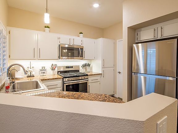 Fully Furnished 1 Bd Luxury Condo with 1 Car Garage for your Short or Long Stay. All utilities included and minimum 30 day rental. Welcome to The Beverly Hills of Las Vegas! Unparalleled locality just steps from everything Posh, The District Shopping Center, Green Valley Ranch Resort, Lifetime Fitness, Whole Foods & more! 1 min access to 215 Freeway and within 15 min or less to The Las Vegas Strip, Airport, Southwest and Summerlin. This Luxurious Condo greets you with a Charming Extra Large Balcony off of the Kitchen & Living Room. Enjoy a Spacious Fully Equipped Kitchen with Water Filtration System and Luxury Appliances. Pop a bottle of Wine and Pour a Glass at your fully equipped Mini Bar & Wine Chiller. Enjoy relaxing evenings utilizing one of many Smart Home Features to set the ambiance with Dimmable Lighting, Gorgeous LED Fireplace & 2 Mounted Flat Screen TVs with inclusive Cable Package. The Tranquil Bedroom offering a Luxurious King Size Bed and and another wonderful Balcony. Come enjoy this Lifestyle at Bella Vista!