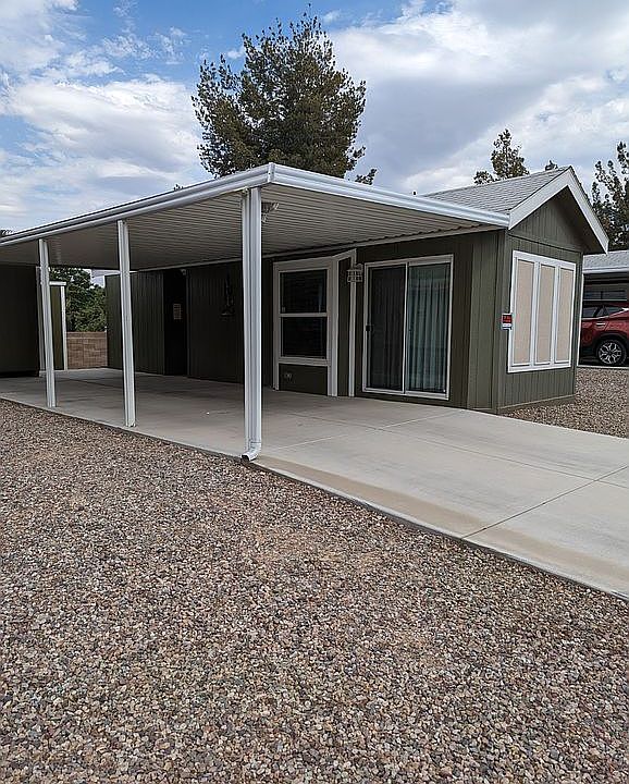 2018 10' x 40' Cavco Park Model Home. 1 Bed, 1 bath, concrete driveway with canopy, exterior solar screen on front window, walk-in shower, huge double closet, wooden cabinetry, hall coat closet, hall pantry, linen closet, electric stove, and central heating/cooling. Two sheds (6' x 6' and 10' x 10') included.
