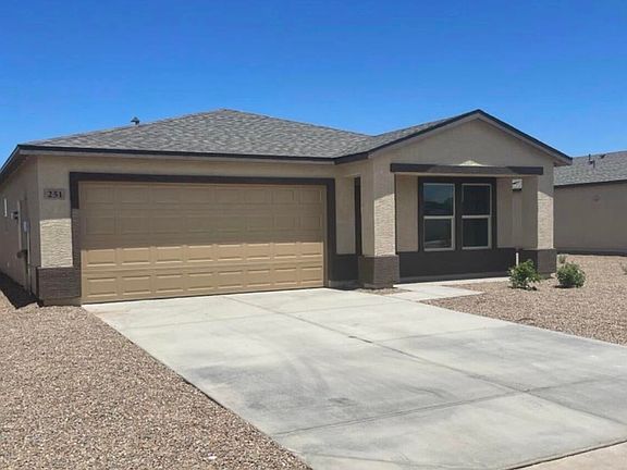 Welcome to this charming 3-bedroom, 2-bathroom home located in the vibrant community of Eloy, AZ. This newer construction home boasts a modern open-concept design, perfect for entertaining and comfortable living. The kitchen is a chef's dream, equipped with stainless steel appliances and stunning granite countertops. The master bedroom is a true retreat, featuring a spacious walk-in closet and a private ensuite for your convenience. The home also includes a generous 2-car garage, providing ample storage and parking space. Experience the perfect blend of style, comfort, and functionality in this beautiful Eloy home.
