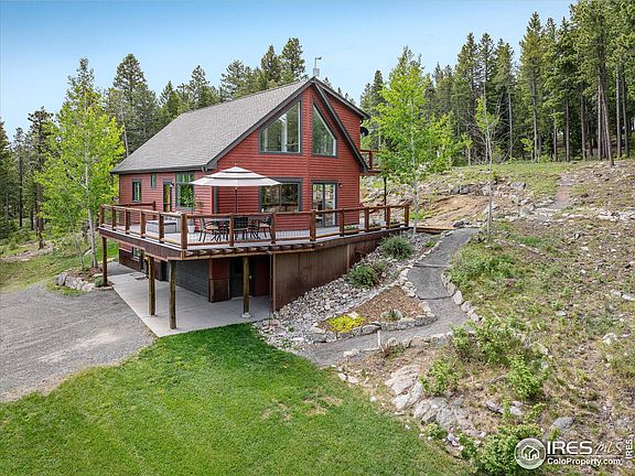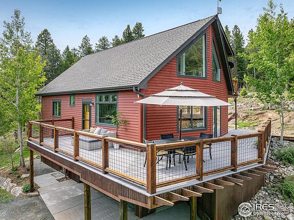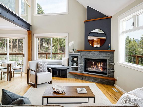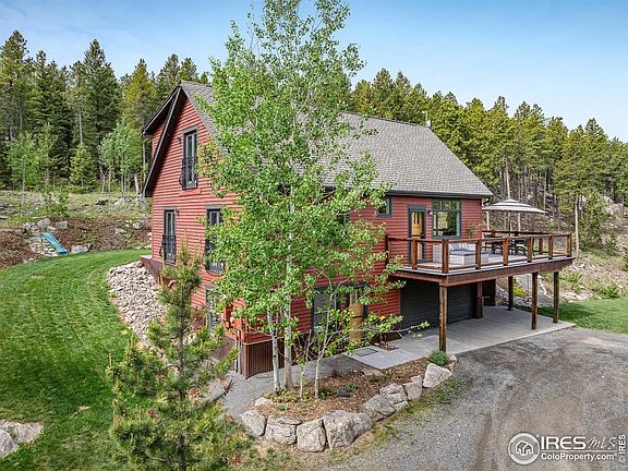 Soak in stunning views of the Continental Divide from this stunning custom built home. A showcase of contemporary mountain architecture unfolds , enhanced by fine craftsmanship and impressive design aesthetics including an energy saving solar system. Enter into an open floorplan enhanced by lofty vaulted ceilings and glass railings. Natural light streams in through expansive windows crafting a bright and airy atmosphere. A cozy fireplace grounds the living area setting the scene for enjoying relaxing evenings at home. The kitchen boasts cherry cabinets, granite countertops and stainless steel appliances. A staircase ascends to an upper-level loft offering access to a balcony. Escape to a primary suite boasting dual closets and a serene bath w/ a soaking tub and a walk-in shower. Downstairs, the walkout lower level features a living area w/ a woodburning stove. Admire captivating mountain views from a sprawling wraparound deck. Enjoy mountain living at its best. A coveted location offers peaceful tranquility plus easy access to Boulder, Nederland and Eldora ski resort.