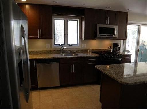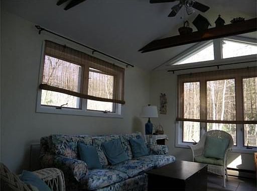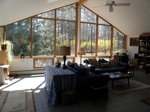 Beautiful multi-level home on 2.25 usable acres in a desirable neighborhood. New eat-in kitchen with dark cherry cabinets, stainless appliances and granite counters. Passive solar, cathedral ceilinged family room with south facing wall of windows framed in beautiful mahogany, gas heating stove hook-up. Double Atrium doors open to large deck that overlooks big level yard with direct access to 100’s of acres of conservation land. Heated sun room also opens on to deck. New roof and Title V approved