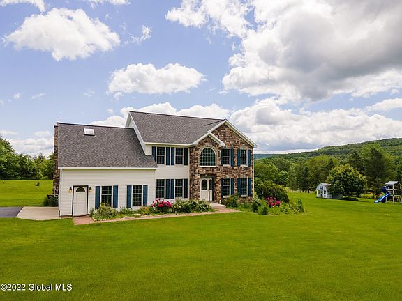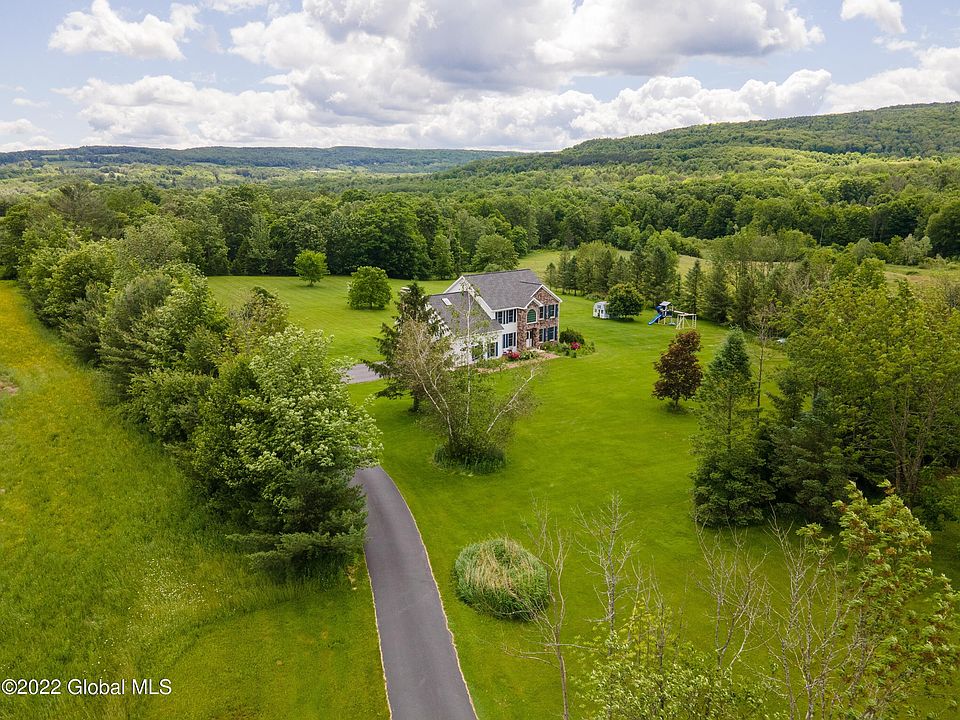 Come and see this exceptional home to call you own. The perfect combination of peaceful country living and yet close enough to all the conveniences. This impressive 4 bedroom, 3.5 bath home is situated on 25 private acres with spectacular mountain views. From the moment you walk through the door, you will be struck with beautiful hardwood floors, a gourmet kitchen, home office and sun-drenched 3 season room. Central air on the second floor. The finished basement with new half bath offers so many possibilities. For the car enthusiast or animal lover, the massive 30x40 barn with electric, attached pole barn, and an electric fence would be perfect. So stop looking for the home of your dreams, you just found it!