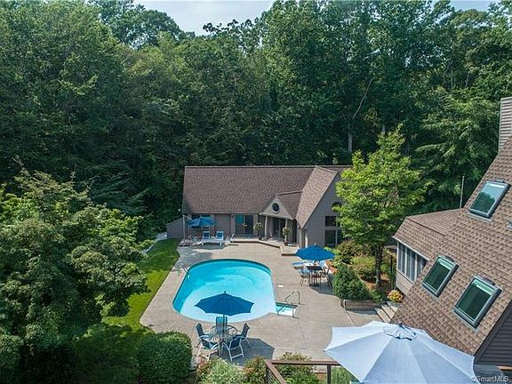 This one-of-a-kind custom residence is a private retreat situated on almost 5 acres in the hills above Madison. The grounds are professionally landscaped with an in-ground pool and gazebo great for summer family fun and entertaining. The main house has 3 floors. The main floor has a newly remodeled kitchen with custom cabinetry, Wolf and Subzero appliances and granite counters, opening into the family room with fireplace and wet bar. The Living room and Dining room with cathedral ceilings have floor to ceiling windows that take in the natural surroundings. The main floor has access to both a screened-in porch and a composite deck that overlooks the serene grounds. The upper floor has 4 bedrooms including a primary suite with a newly remodeled bath, oversized tiled shower, double sinks and custom walk-in-closet. There is a bonus room on the upper level which could make a great playroom, guest room or additional office. A lower floor rec room has a rustic wet bar and pool table and sliding glass door that opens onto the pool patio. A private 1100-square-foot pool house adjoins the pool and is rented separately. Whole house has automatic backup generator. The pool house has a full kitchen and full bath with a hot tub. Although very private, this home is minutes to the Madison town center and its beautiful sandy beaches. There is an elementary school and an intermediate school within walking distance. Enjoy the Bailey hiking trail across the road or fish for trout in the Hammonasset River. Large dogs are considered on a case-by-case basis. Owner pays for the regular maintenance of yards and pool. Water is included in rent. Renter is responsible for all other utilities. No smoking allowed.