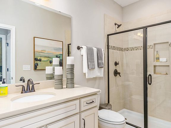 The Middleton is a two-story floorplan with three bedrooms and two and one-half bathrooms. A powder room and coat closet are conveniently located upon entry. An office is situated at the front of the home on the first floor and features French doors that bring in plenty of natural light. Luxury vinyl plank flooring extends throughout the main living areas on the first floor. Just beyond your office is a great room that is open to the kitchen and eat-in area. The kitchen features a corner pantry, upgraded white cabinets, white tile backsplash and granite countertops. The backyard is accessible through the eat-in area and includes a covered porch. The primary bedroom is on the first floor, situated off the gathering area. Ensuite bath has a double vanity with quartz countertops, five-foot tiled shower with glass enclosure and a large walk-in closet. Upstairs are two spacious bedrooms that share a full bath. This home is complete with a laundry room at the garage entry and a large car and a half garage. Additional options include a tray ceiling in the primary bedroom, cabinets in the laundry room for storage and bench and cubbies at garage entry. Cypress Village has a fabulous amenities center and community pool with fitness room, putting green, fishing ponds and more! HOME PICS ARE OF ANOTHER COMPLETED HOME. FOR REPRESENTATION ONLY.