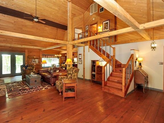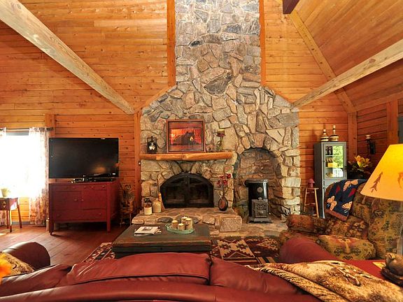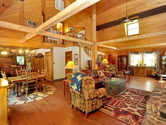 Open the front door of this secluded log home to a breathtaking view of the magnificent stone fireplace. Pre-inspection done, so no unwelcome surprises! New top-of-the-line HVAC. Antique Hoosier, island & china cabinet included. Refrigerator, washer (new) & dryer included if wanted. New metal roof over porch. Relax on the rocking chair front porch, screened porch, or large deck & experience your own private nature park with abundant wildlife. Enjoy hiking, camping, & boating at nearby Jordan Lake.