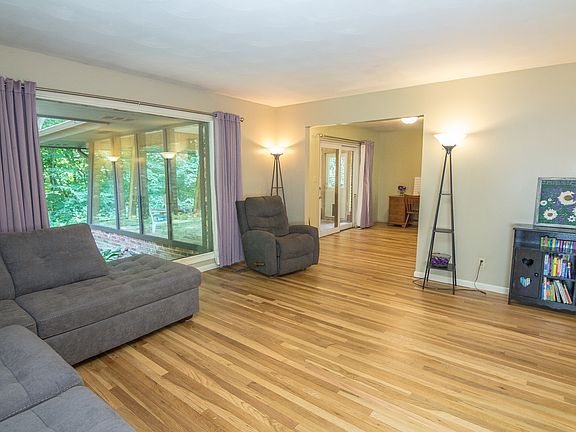 This ranch home is nestled in the middle of a 5-acre wooded lot with a brick exterior, refinished hardwood floors, and a sunroom with a peaceful view. There is a detached 2-car garage with a loft, ideal for project and storage. The yard is 2.5 acres and there are 2.5 acres of wooded ravines. High school students will attend Harrison HS, and the middle school and elementary is Klondike, all in the Tippecanoe School District. There is fiber-optic cable for high-speed internet. This is listed $10,000 less than the Zestimate! Buyers' relators are welcome!