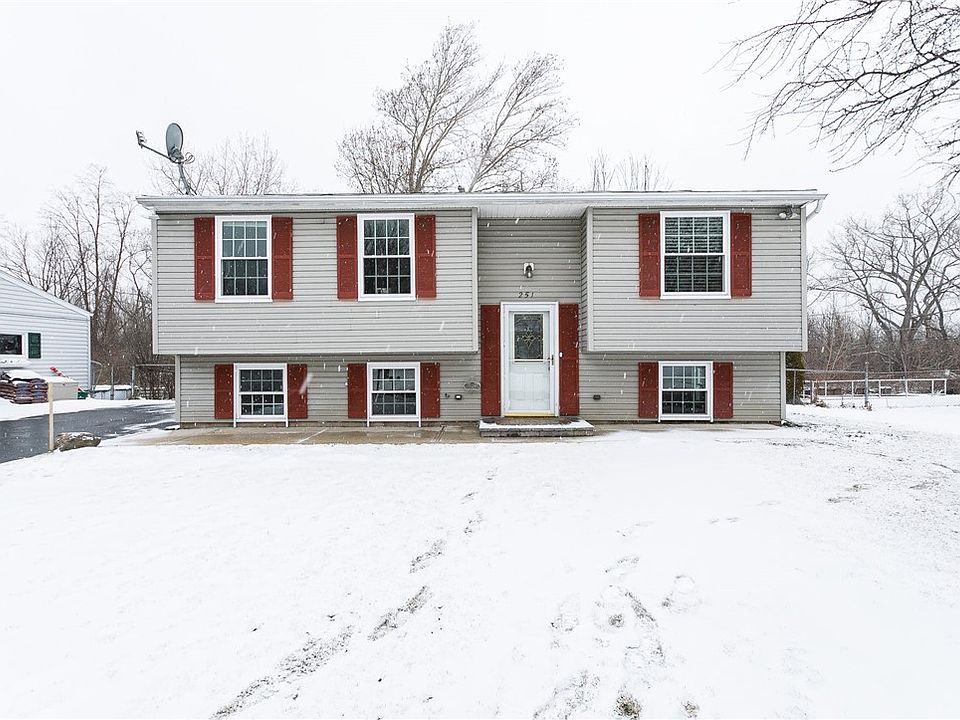MOVE RIGHT IN TO THIS ONE!! "Turn-Key" Stunning 1760 SF 4-Beds, 1-Bath, Raised Ranch in Henrietta! BRAND NEW EAT-IN KITCHEN ’23, everything has been Replaced & Reconfigured w/ all new appliances including dishwasher, cabinets, floor, sink and faucet. Off the new eat in kitchen – is a three-season porch (sunroom) w/ build in storage (access from yard). Beautifully Remodeled Bathroom ’20 - large bath-tub- tile surround, floor, vanity, medicine cabinet and lighting! Huge family room, 2-Story Foyer, large coat closet/linen closet. HUGE Primary bedroom, tons of storage. REMODELED lower-level, some drop ceiling was drywalled for a modern feel, 4th Bedroom/ Office, spacious remodeled laundry ’23, Roof 2013, HWT '19, Central AC ‘13, Furnace clean & inspection ‘23, mostly new windows ’21, Electrical panel 200 amps, double wide driveway w/ 8 parking spots. Front concrete Patio ’21. Off the sunporch you can sit on your large DECK and look over the Fully Fenced Backyard w/ Views of your field of Daylillies and FOREVER WILD!! Convenient location near West Henrietta Rd Shopping and Restaurants. Schools Rush-Henrietta. Delayed negotiations Tuesday 3-21-23 @ 10am