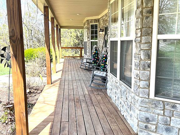 Welcome Home to this Gorgeous Secluded Custom Built 3 Bedroom, 3.5 Bath Home on over 7 acres only 7 miles from the schools and town and 30 minutes to Lexington. This Home is completed with a Full walk around porch, Floor to ceiling rock fireplace in the vaulted Great Room with wood flooring, Concrete countertops in the Kitchen, Tile walk in shower and a walk out finished Full Basement with a second Kitchen, living area and stained concrete floors. Outside you will love the concrete patio and fire pit area overlooking the view of the backyard and woods, the two-car detached garage with an attached greenhouse space and a storage/chicken coop/dog kennel shed all in one! Beautiful details, move in ready with room to breathe in the country!