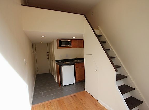 Stunning studio apartment available for an immediate move-in Hardwood flooring throughout Great natural light Loft storage space above Located on a beautiful, quiet, one way, tree-lined block 4TH floor walkup Seconds away from 123F trains, ACE, accessible to all of Manhattan.