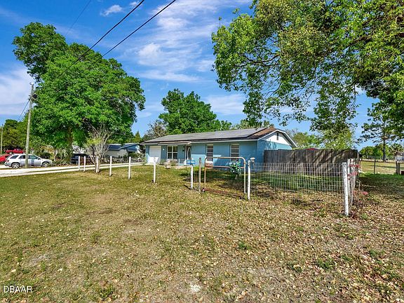 Want to have a little piece of land at an affordable price in the country but minutes to town?! Here it is! Check out this block, 3 bedroom, 1 bathroom home with a 1 car garage that is under air. This home sits on .49 acres and is completely fenced with 2 work shops and a carport big enough for an RV. The ac system in the home is only a year old and the home is completely ran off of solar, so you will have no power bill! The interior features newer laminate flooring, crown molding, new appliances and a renovated bathroom. The exterior has been recently painted and ready for you touches. All of this within about 10 minutes to Award Winning Downtown Deland, 25-30 minutes Daytona or Ormond Beach, and about 45 minutes to New Smyrna Beach. Come check it out!