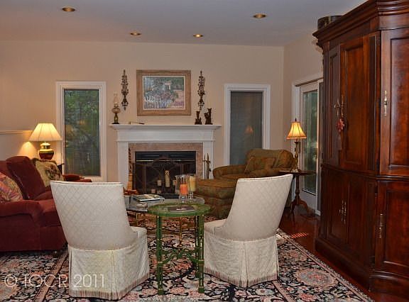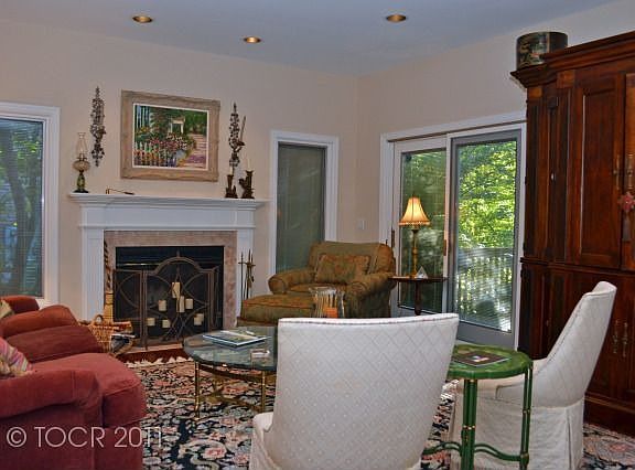 Gorgeous and renovated. End unit on most desirable street in Apple Ridge Community offers carefree living in a beautifully landscaped townhouse community setting. Enter through serene garden area to first floor with dark cherry wood floors throughout. Beautiful renovated kitchen with maple cabinets, granite countertops, tile backsplash and new stainless appliances. Renovated baths, new carpet throughout, new furnace, air conditioning, and newly painted throughout. Master bedroom has walk in closet and floor to ceiling built in wall cabinets for entertainment and clothing plus built in make up area. A large deck with gas hook up for grill looks out over wooded backyard with spa-like creek in rear. Finished basement and attached garage completes this gorgeous home. Move in ready! Club house, pool and tennis in this gated community! - Basement: Full Finished, Walk out, Storage