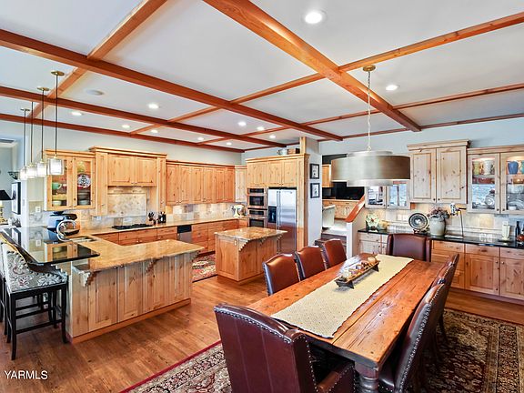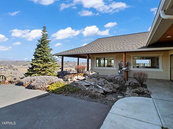 Stunning views from this hilltop retreat! Immaculate and updated home is located in the gated Coyote Canyon neighborhood and is perfectly situated to fully enjoy the scenery. Set on over five acres, the natural style of the home blends flawlessly with the setting. This welcoming home displays incredible attention to detail in the design and the updates.The heart of the home is the spacious and open kitchen, dining and family room which are highlighted by the stunning view. Reclaimed wood from local warehouse fire has been beautifully restored and is featured throughout the home. The kitchen features an island and granite countertops and the adjacent dining room offers a built-in buffet. The primary bedroom is separate from the two guest bedrooms and offers a fully updated bath and shower plus separate walk-in closets. Guestrooms share a modern bath with live edge quartz countertops and natural elements.Office is a cozy vaulted space that can double as a second family room with thoughtful storage and built-in desks. Additional room serves as a hobby room or could serve as a fourth bedroom.The exterior wrap-around porch and gas fire pit area offer endless enjoyment of the serene view. Backyard is fenced and offers a separate 3-bay 1,400 sqft shop for additional storage of a car collection or toys.This beautifully crafted home is the perfect escape and will allow you to enjoy the changing seasons perched high above the valley. With its rustic and natural warmth, this home feels like a private retreat, yet offers a convenient West Valley location.