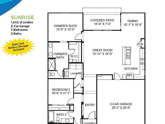 The Sunrise at The Traditions at Mountain Gate is masterfully designed for energy efficiency, comfort, and durability. Every detail of this 1,642 square foot floor plan has been thoughtfully considered. The spacious Great Room is perfect for gatherings and joins to the patio with a variety of sliding door options. There are plenty of design options to make Sunrise your own, from a amazingly appointed gourmet kitchen, to the tile in the roomy owner's bath. The Sunrise starts at 1,642 square feet, 3 bedrooms, 2 baths, with a 2 car garage.This Sunrise floor plan comes with solar and sonnen energy storage included.