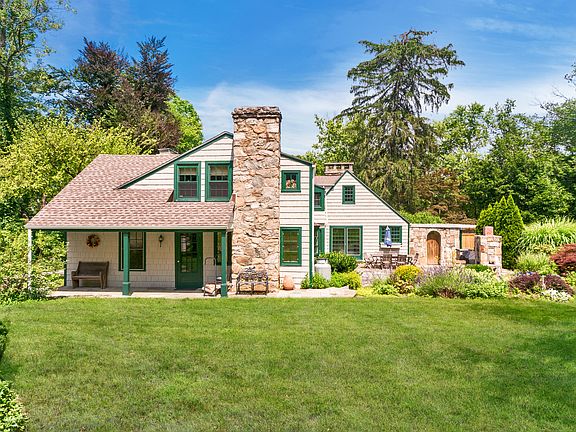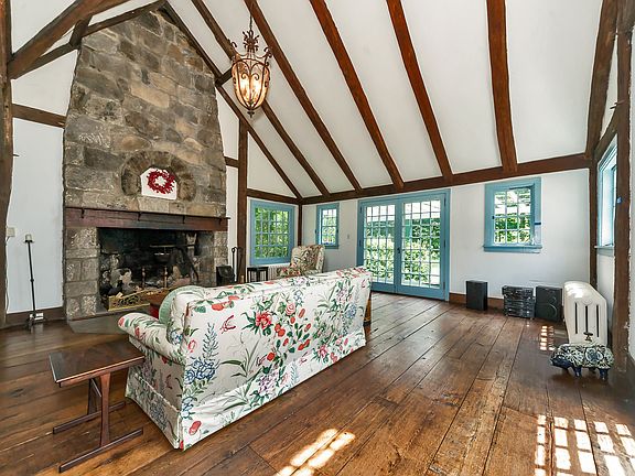 Magical and cozy oasis close to downtown New Canaan. 1700's house is loaded with charm, four fireplaces, wide floorboards and a juliet balcony, outside patio with stone fireplace. Detached garage/barn has wonderful potential for home office or playroom . Air conditioning first floor only. Side entrance behind garage for barn.
