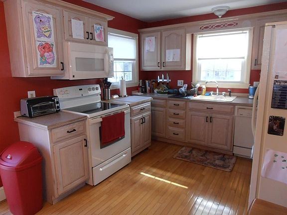 Looking for your First House? Then start here in this Cozy Ranch with 2 bedrooms, 1 bath in one of the city's best neighborhoods. If you've been dreaming of a home with built in bookcase, fireplace. hardwood floors, remodeled kitchen with new white appliances, dining area with access to a wooden deck, newer windows and furnace and a full wall windowed sun room, look no further! You can relax or entertain in your over sized yard and enjoy the mature fruit trees. You'll also love the spacious 2 car garage. This modest home has endless possibilities with room to expand! Just minutes from route 140 yet situated on a small side street.