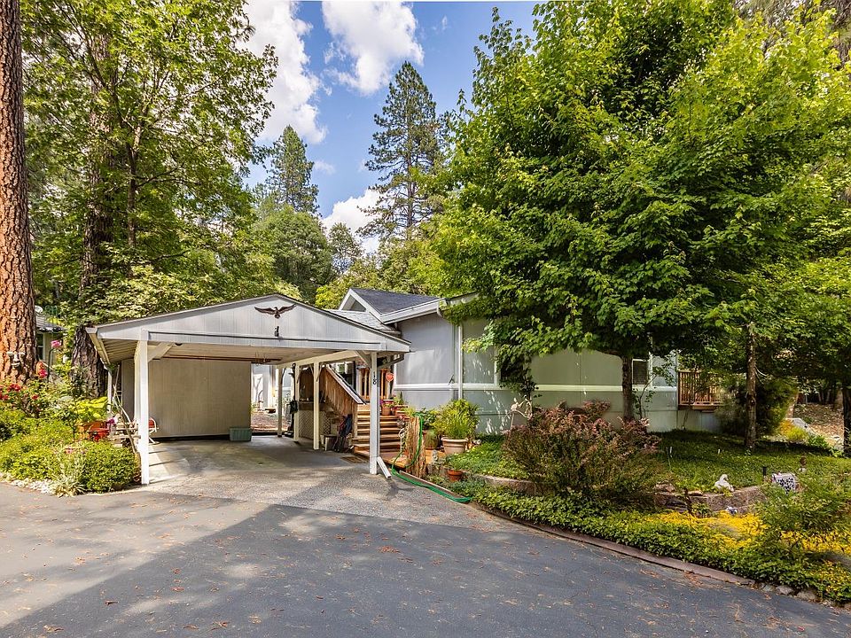 A hidden gem is now available for this fantastic 3 bedroom manufactured home built in 2001 with so many upgrades and located on the largest lot in this sweet Pine Rock Park! Covered porch leads you into the great room with loads of windows, vaulted ceilings and a wonderful feel! New flooring, paint and upgraded lighting! Granite counters in the kitchen with loads of cabinets, new refrigerator, hot water heater and raised panel doors. Huge primary bedroom with vaulted ceilings, walk in closet and a lovely master bathroom at one end of the house and quaint guest bedrooms on the other side of the home! Covered front porch deck and a huge back deck looking into the woods and offering a lovely sense of privacy! A great garden shed and a larger shed at the back of the home which can be a great craft room! Sunny garden area for the green thumb and walking distance to downtown Nevada City! Why pay high property taxes when you can enjoy low taxes and insurance, and hidden in an absolutely charming park that rarely has homes available? All city utilities, generator and mature landscaping offering a canopy of maples and redwoods!
