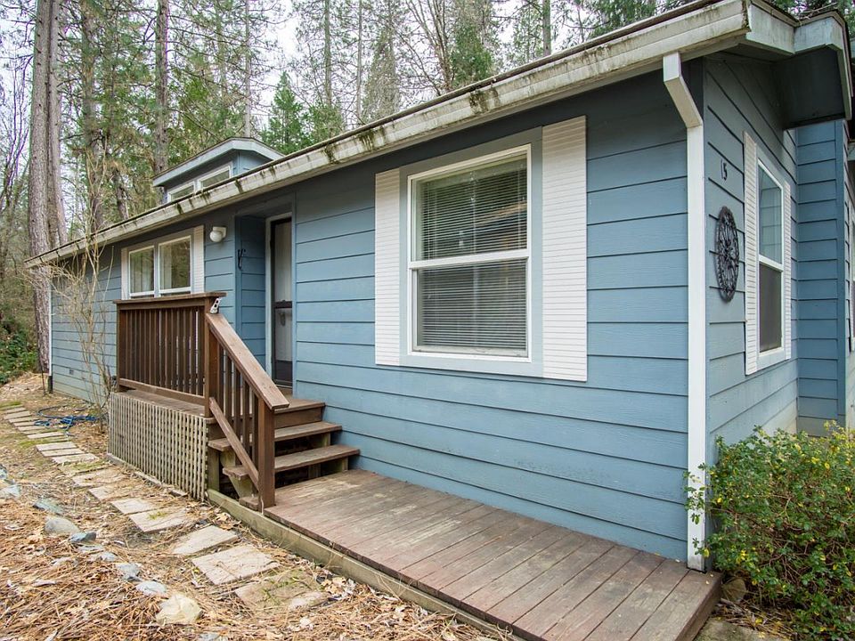 Turnkey and move-in ready this manufactured home is affordable and in one of the nicest Mobile parks in Nevada County. Located within walking distance to Nevada City the park is quiet and well maintained and nestled in the tall pines, cedars and moss rock outcroppings that Nevada City is known for! The home is all single story 3 bedroom and 2 bathroom with vaulted ceilings in the living room and master and nice dormers to let in extra light. The kitchen is roomy and has a breakfast bar to socialize with the cook during your get togethers! There is a separate laundry room with washer and dryer included. The deck is a pleasant spot to enjoy the mornings with a cup of coffee overlooking the trees and large rock out croppings. The home has a detached carport with additional closet storage and space 15 backs to a small ravine so it has great privacy too. Pine Rock is close to public transportation and all the amenities that Nevada City has to offer!