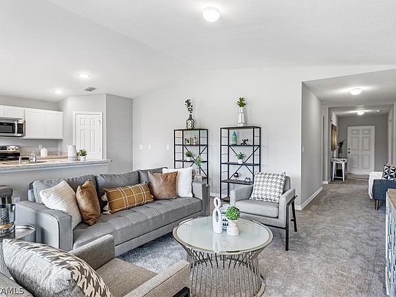 NEW CONSTRUCTION WITH WARRANTY! The Gasparilla is a spacious home with 1,810 sq ft of living area featuring an open great room with vaulted ceiling and sliding glass doors to the covered lanai, kitchen with a large freestanding island and walk-in pantry, and dining room with tray ceiling that creates a generous space for gathering and entertaining. You’ll love the expansive primary suite with its large walk-in closet and private bathroom boasting a dual-sink vanity, linen closet, and large shower. At the front of the home, two bedrooms share the guest bathroom. The fourth bedroom is ideal for additional guests or a private home office or retreat. This home boasts hurricane-impact windows and doors, designer cabinetry in the kitchen and bathrooms, a stainless steel range, microwave, and dishwasher, and an attached two-car garage.