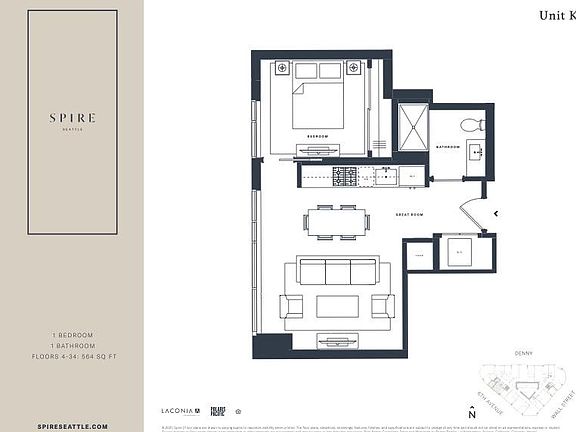 Spire Condominiums, at the intersection of Belltown, South Lake Union, and Denny Triangle, offers iconic Space Needle and water views. Easy access to a shops, restaurants and bars, technology centers, arts, outdoor recreation and entertainment. This One Bedroom features Bosch appliances, Whirlpool washer & dryer, A/C and abundance of oversized windows. Amenities include 24 hour concierge, 41st floor fitness center and pet run, 40th floor clubroom, dining room, lounge, outdoor terraces with grills, 3rd floor co-working space, private conference room, theater, movement studio + more.