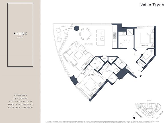 Spire Condominiums, at the apex of Belltown, South Lake Union, and Denny Triangle, offers iconic Space Needle and water views unlike any other new condo building. This coveted location allows easy access to retailers, restaurant/bars, technology hubs, arts, outdoor recreation, and entertainment. Rising high at 41 stories of incredible living spaces this 2 BR/2 Bth offers NW VIEWS of the Space Needle, Olympic Mountains and Sound in addition to a great kitchen, island, balcony and parking! Amenities include concierge, top floor fitness center, pet run, 40th floor clubroom, dining, terraces, co-working space, conference room, theater, movement studio + more. Buyer must register their broker on first visit.