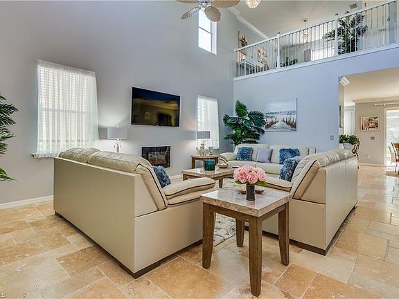 Huge price reduction. Experience This 2-story home with open foyer & living/great room has fresh paint/new carpet/crown molding throughout. An open iron rail banister on the staircase and balcony, tile floors downstairs, large walk-in shower in the master bath (which is located on the first floor), 42" cabinets in the kitchen with built-in desk, brushed chrome backsplash, tiled island and upgraded granite. Switches have USB ports. All rooms have built in TV's. The backyard features a CUSTOM POOL with SUNSHELF AND BUBBLERS facing Southeast looking out onto a LARGE BACKYARD. This home is the perfect place to entertain your friends, family, or just kick back, and RELAX in Cape Coral's Premier Gated, Resort Style community of Sandoval with Lush Tropical landscaping, Walking/Jogging paths, 2 Dog Parks, Fishing Pier, BRAND NEW Playground and Bocce Courts, Tennis Courts, Basketball Courts, Fitness Center, Clubhouse, PLUS the most amazing POOL you've ever seen, complete w/WATER SLIDE, Water Features, BEACH ENTRY, and plenty of room to play, swim or just RELAX! Schedule your showing today.