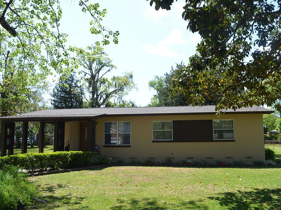 This 3 bedroom 2 bathroom cul-de-sac home is in move-in ready condition, and sits on over 2/3 of an acre of fenced lot. There's a detached garage & storage shed with power, and the lot has mature trees and gorgeous landscaping. Inside you'll enjoy original hardwood floors throughout, and tile in the kitchen & baths. The kitchen has lots of storage space in the beautiful hand-made cabinets. This solid concrete block home also has a brand-new roof with a lifetime transferable warranty!